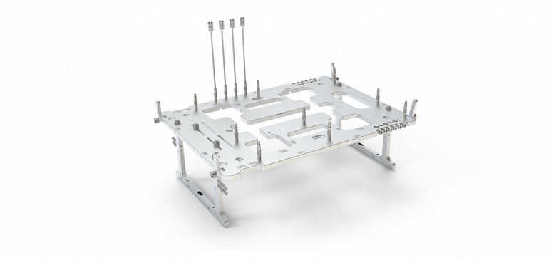 Конструкцией шасси предусмотрена возможность вертикальной установки. Благодаря дополнительным прорезям в плите, собранную систему легче переносить и в целом обращаться с ней. Кроме того, эти отверстия открывают дополнительные маршруты для прокладки кабелей и снижают вес.
