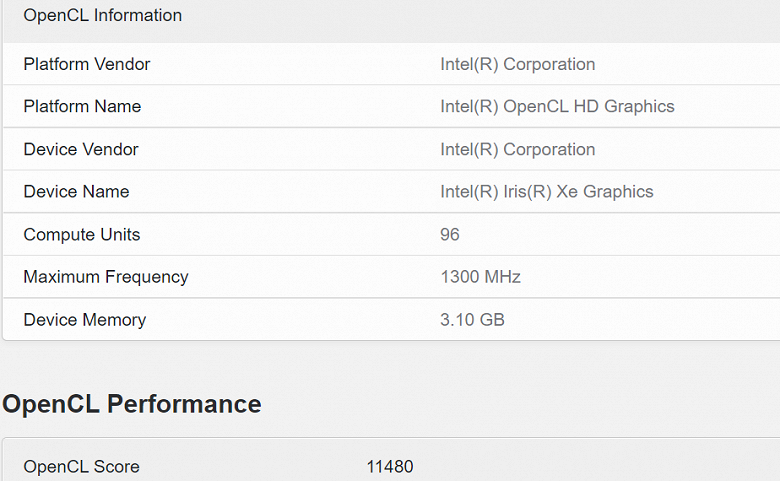 Core i9-12900HK – это 14-ядерный процессор с поддержкой выполнения 20 потоков. В его состав вошел GPU с 96 исполнительными блоками – их на 64 больше, чем у недавно представленных настольных CPU Alder Lake-S. Вместе с тем, производительность такого графического ядра невысока – 11 480 баллов в тесте OpenCL. Даже встроенное ядро AMD RX Vega быстрее. Но, опять же, и тут надо учитывать тот факт, что тестировался не готовый ноутбук, а прототип.
