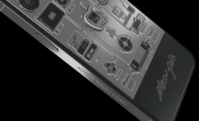 В корпус смартфона встроен фрагмент материнской платы того самого iPhone первого поколения. Оригинальные фрагменты iPhone разделены на 19 частей для 19 экземпляров ограниченной серии Caviar iPhone 2G.