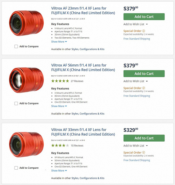 Объективы линейки Viltrox China Red Special Edition появились в магазинах B&H и Amazon