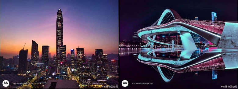Первые фотографии были сделаны в тёмное время суток, водяные знаки подтверждают, что снимки сделаны на Moto Edge 30X. Уже известно, что устройство будет оснащено тройной задней камерой с основным и сверхширокоугольным модулями разрешением по 50 Мп, а также 2-мегапиксельным датчиком глубины сцены.