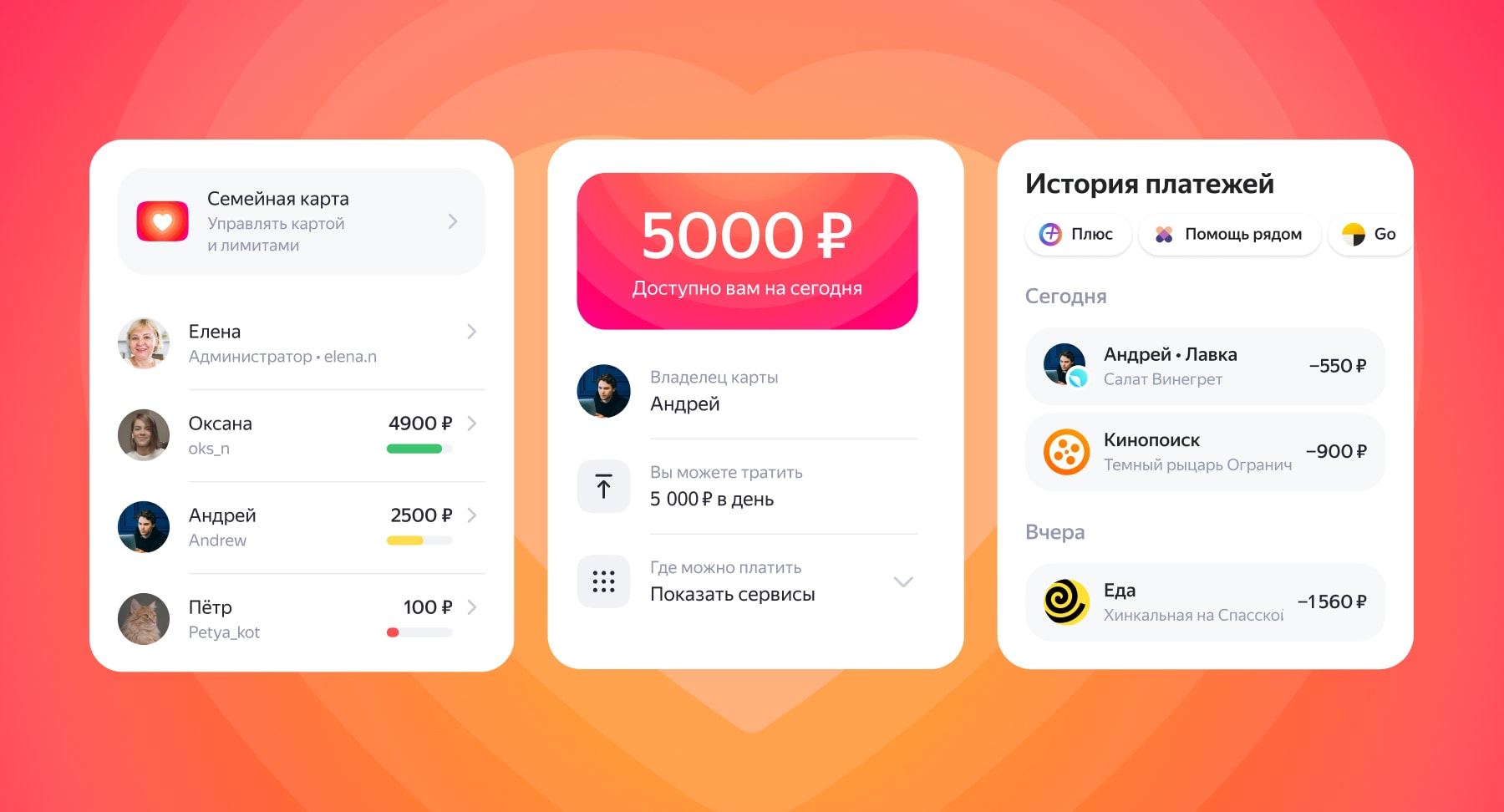 Это удобно, например, супругам для оплаты поездок на такси или доставки еды из Яндекс.Лавки, а родителям для доставки из Яндекс. Маркета.