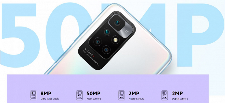 В основе аппаратной платформы лежит однокристальная система MediaTek Helio G88. В базовой версии – 4 ГБ ОЗУ и 64 ГБ флеш-памяти. Фронтальная камера – 8-мегапиксельная, основная – с четырьмя датчиками разрешением 50, 8 (со сверхширокоугольным объективом), 2 (для съемки макро) и 2 (для анализа глубины сцены) мегапикселей.