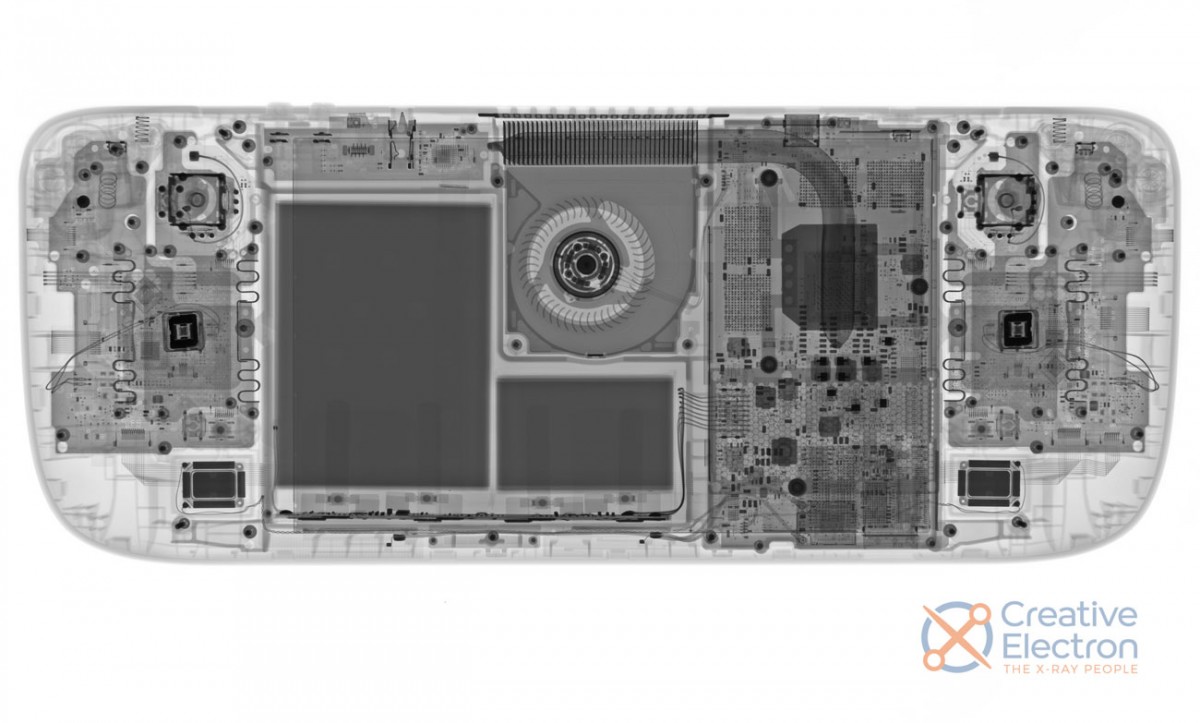 Кроме того, iFixit также выпустил полную разборку Steam Deck вместе со следующим рентгеновским изображением. Хотя в октябре прошлого года Valve выпустила разборку, она показала только внутреннюю часть устройства и снятие стиков. iFixit идёт дальше и хвалит то, как хорошо было маркировано устройство. Рамку очень легко разобрать и отсоединить без удаления клея.