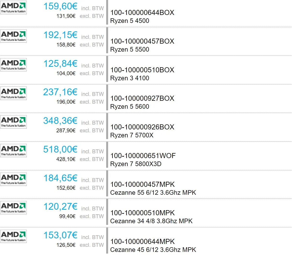 Процессоры, которые AMD должна представить в ближайшие дни, уже стали появляться в европейских онлайн-магазинах. Это позволяет оценить европейские цены.