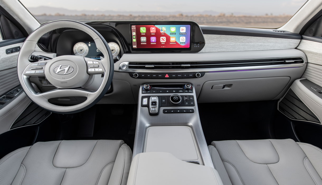 Версия 2022 года В салоне рестайлингового Hyundai Palisade можно увидеть новый руль, свежую цифровую панель приборов, другие материалы отделки, увеличенный экран мультимедийно-развлекательной системы. Кроме того, изменилась форма дефлекторов вентиляции.