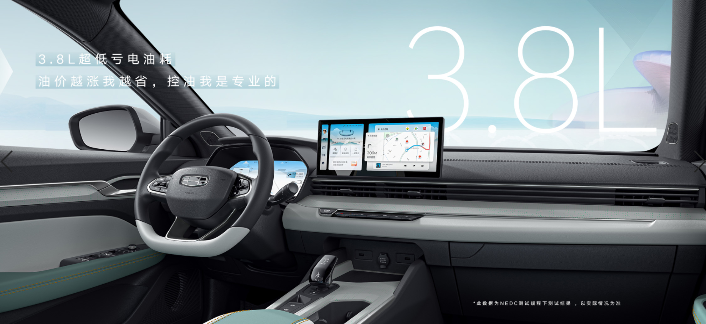 Представлен совершенно новый Geely Emgrand. Расход бензина 3,8 л на 100 км, 1300 км на одном баке и разгон до 100 км/ч всего за 6,9 с