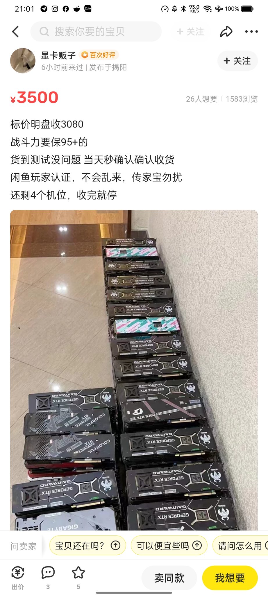 Как сообщается, приложение Taobao, при помощи которого продают бывшие в употреблении вещи, завалено предложениями продажи GeForce RTX 3080. Цены стартуют от 530 долларов. Большинство 3D-карт – от Gigabyte, Galax, MSI, но есть и OEM-варианты. Например, от Dell.