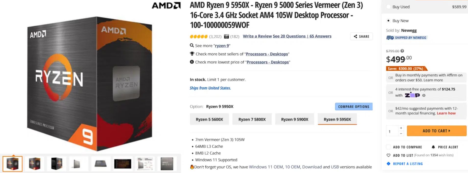 AMD снизила стоимость всех процессоров Ryzen 5000 в США. Флагманский Ryzen 9 5950X подешевел на 300 долларов