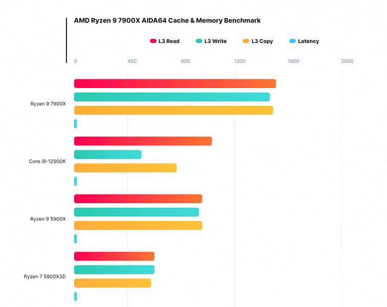 Ryzen 9 7900X не оставляет шансов Core i9-12900K. Появились тесты пропускной способности кеш-памяти