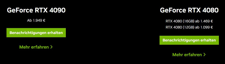 GeForce RTX 4090 и RTX 4080 в Европе заметно дороже, чем в США