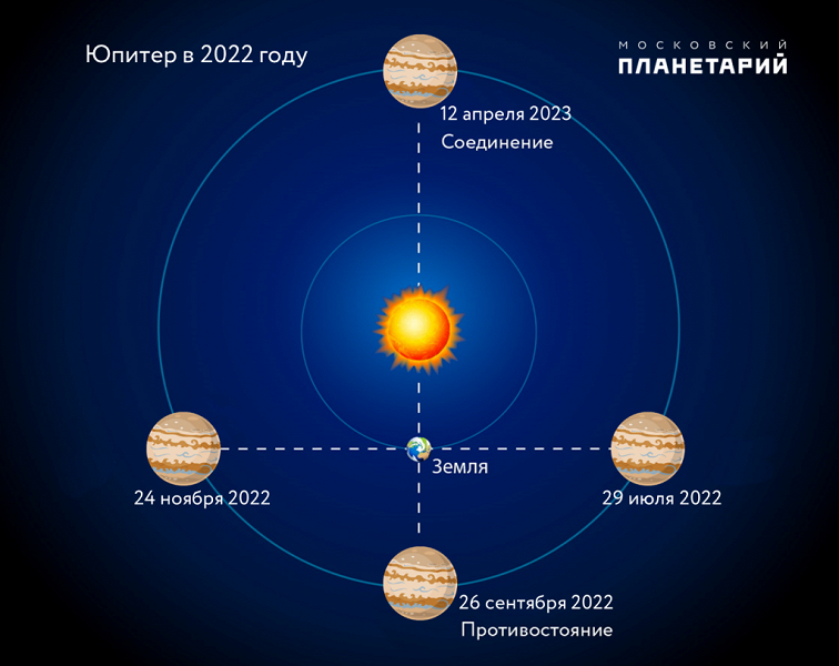 Сегодня, 26 сентября 2022 года, можно будет наблюдать интересное астрономическое событие — Юпитер окажется в точке противостояния с Солнцем, на минимальном расстоянии от Земли за последние 59 лет.