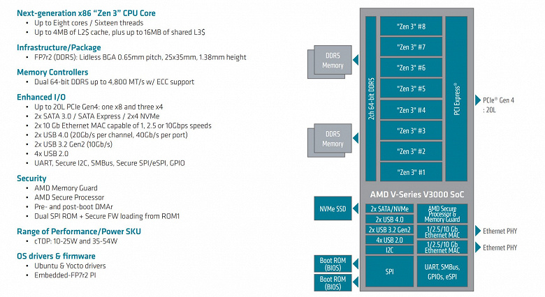 Ещё немного новых процессоров от AMD. Ryzen Embedded V3000 основаны на архитектуре Zen 3