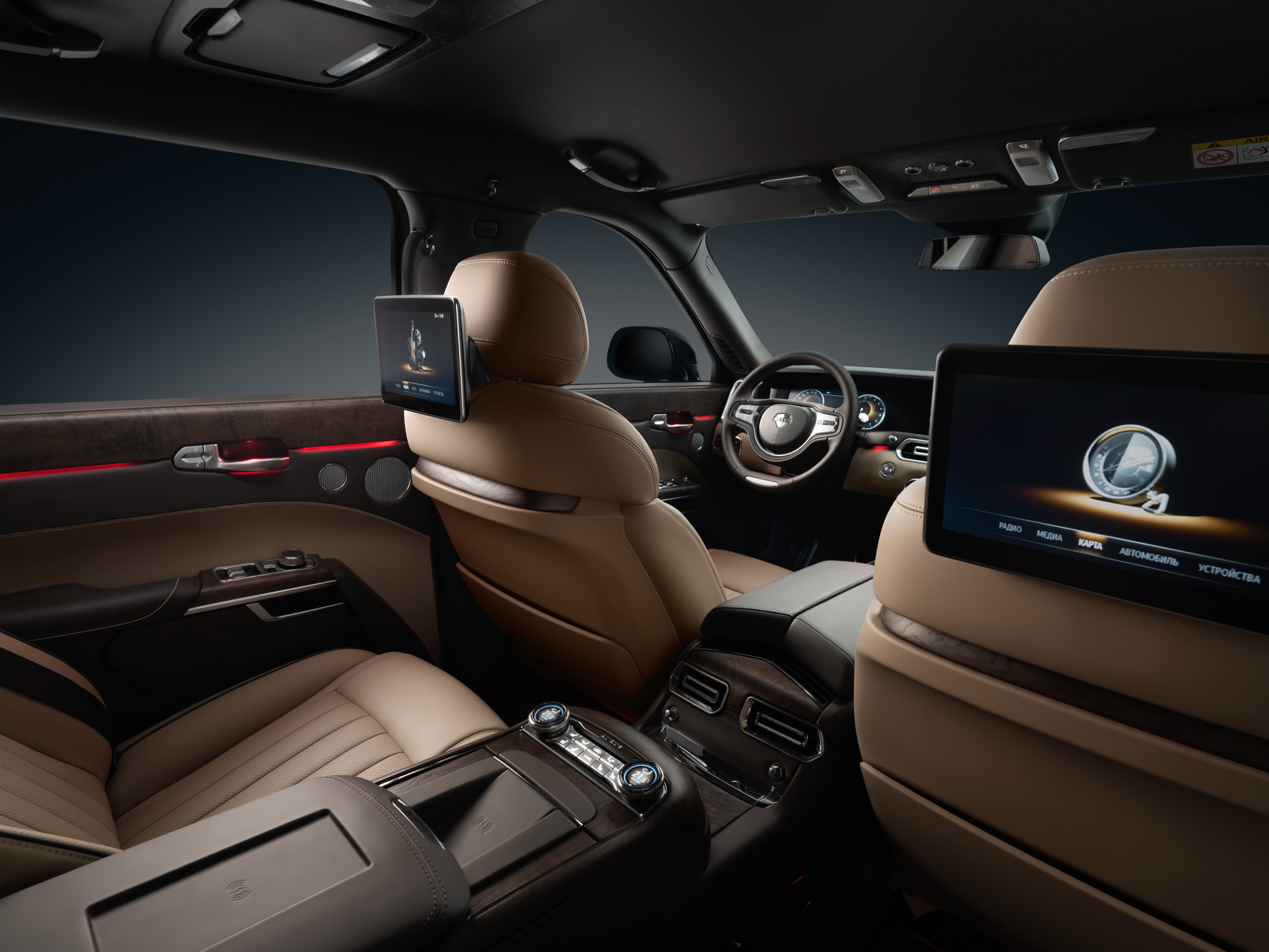 Салон Komendant оснащен атмосферной подсветкой, мультимедийной системой премиум-класса с двумя отдельными экранами для пассажиров заднего ряда, а также удобными креслами со встроенными функциями массажа, вентиляции и памяти. Также есть автоматизированная система помощи водителю (ADAS), но это вовсе не автопилот как у Tesla.
