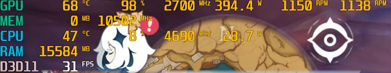 Если при разрешении 7К GeForce RTX 4090 позволяла играть в Genshin Impact с кадровой частотой около 100 FPS, то при разрешении 13К кадровая частота, естественно, оказалась ниже – она упала до 30 FPS (при максимальных настройках). Но при этом играть все равно можно.