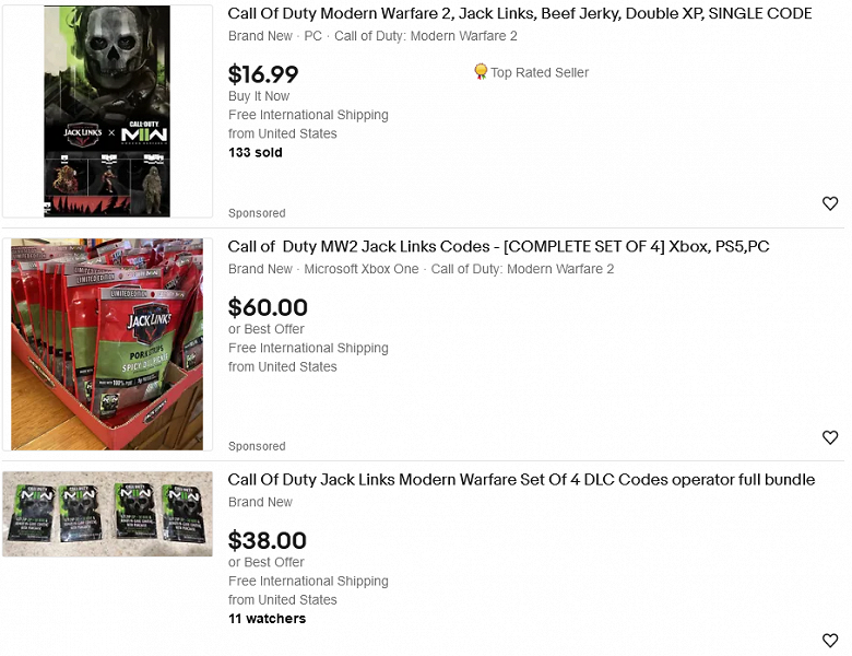 В рамках коллаборации создатели Call of Duty: Modern Warfare 2 объединились с производителем вяленой говядины Jack Link's. На упаковках с мясными закусками разместили стикеры с кодами, которые дают двойной опыт в шутере. Однако мошенники начали отклеивать стикеры, не покупая продукты, а затем продавать их на eBay.