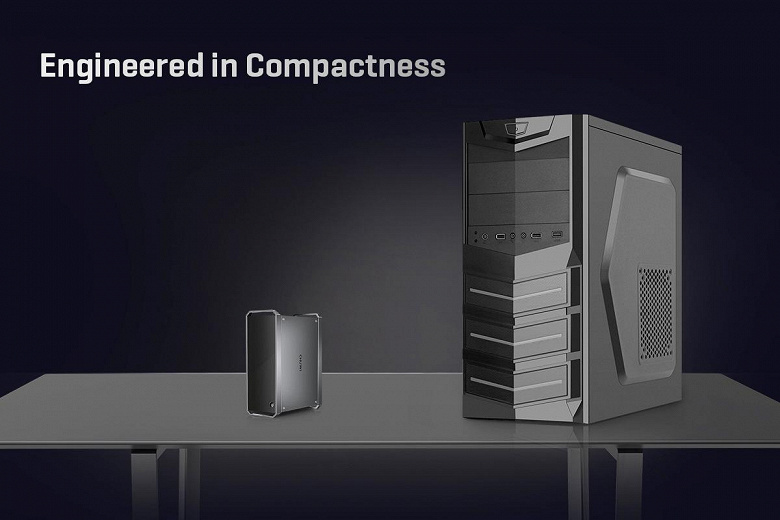 При этом компьютер обещается в компактном размере (44 x 134 x 139 мм). Порт Thunderblot 4 работает в 8 раз быстрее, чем USB 3.0. Скорость передачи данных может достигать 40 Гбит/с. Вы также можете использовать его для зарядки других устройств при мощности 90 Вт.