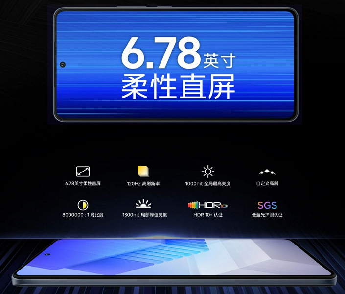 iQOO Neo 7 SE — немаленькая модель: аппарат получил дисплей OLED с диагональю 6,78 дюйма. Разрешение составляет 2400 х 1080 пикселей, кадровая частота — 120 Гц. Фронтальная камера — с 16-мегапиксельным сенсором. iQOO Neo 7 SE получил систему охлаждения с испарительной камерой площадью 2396 мм2, так что перегреваться не должен.