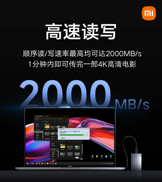 Накопитель внешний, и судя по заявленной скорости чтения и записи (до 2000 МБ/с), внутри установлен SSD M.2 с поддержкой PCIe, но при этом по габаритам устройство больше похоже на накопители на базе SSD типоразмера 2,5 дюйма. Впрочем, корпус изготовлен из анодированного алюминия и должен быть довольно прочным. Подключается SSD через USB-C. Xiaomi говорит, что новинка совместима не только с компьютерами под управлением Windows и Linux, но и MacOS тоже, а также телефонами на Android (версии 9 и выше).