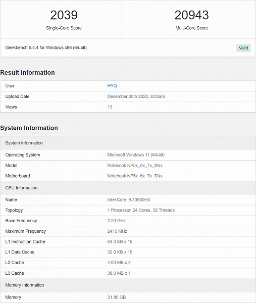 Intel готовит настоящего мобильного монстра, который будет быстрее Core i9-12900KS. Появились тесты Core i9-13900HX