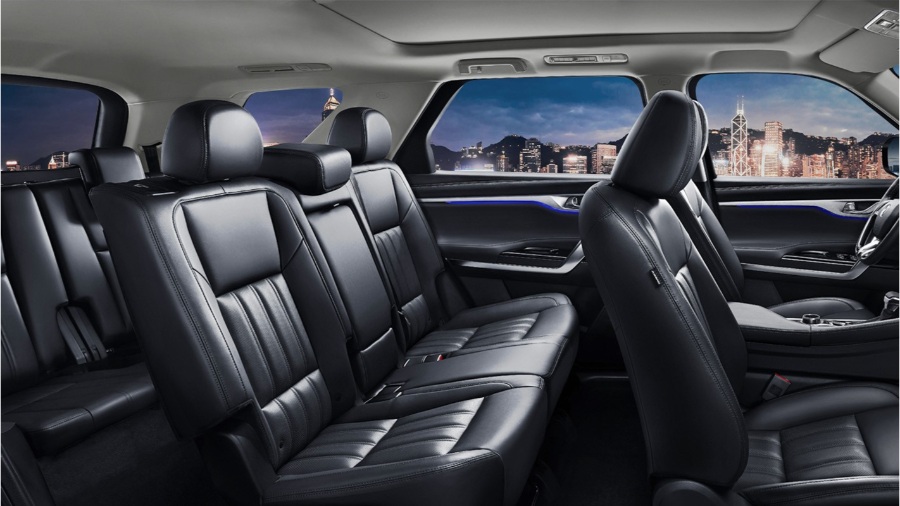 Автомобиль получил просторный семиместный салон и привычное для современных китайских машин оснащение, включая круиз-контроль с кнопками управления на руле, камеры кругового обзора, кнопку для запуска двигателя в салоне авто, функцию дистанционного запуска двигателя, электрический подогрев сидений, люк с панорамой и так далее.