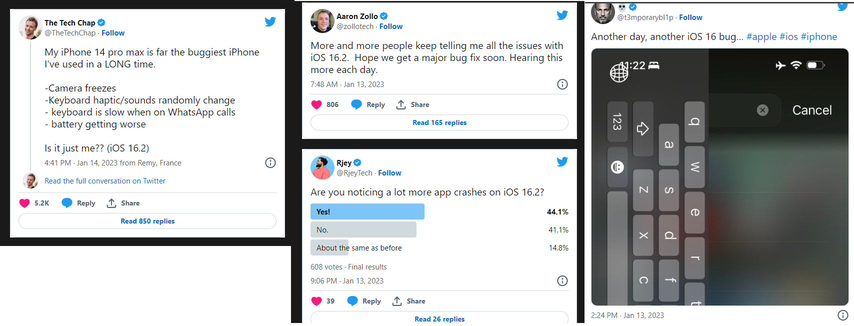 По данным MacRumours, спустя четыре месяца после запуска операционной системы iOS 16 некоторые пользователи продолжают сообщать о множестве ошибок, среди которых называют медленное всплывающее окошко клавиатуры, случайные перезагрузки, зависания камеры и многое другое.