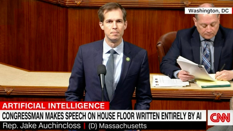 ChatGPT проникает всё в более глубокие сферы жизни. Два дня назад конгрессмен Джейк Очинклосс (Jake Auchincloss) первым в истории выступил в зале Палаты представителей с речью, написанной нашумевшим чат-ботом.