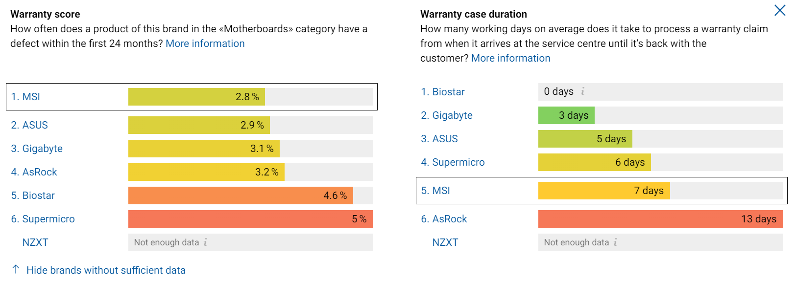 В случае с системными платами, во-первых, в целом обращений по гарантии больше, а во-вторых, тут уже лучшими являются MSI и Asus.