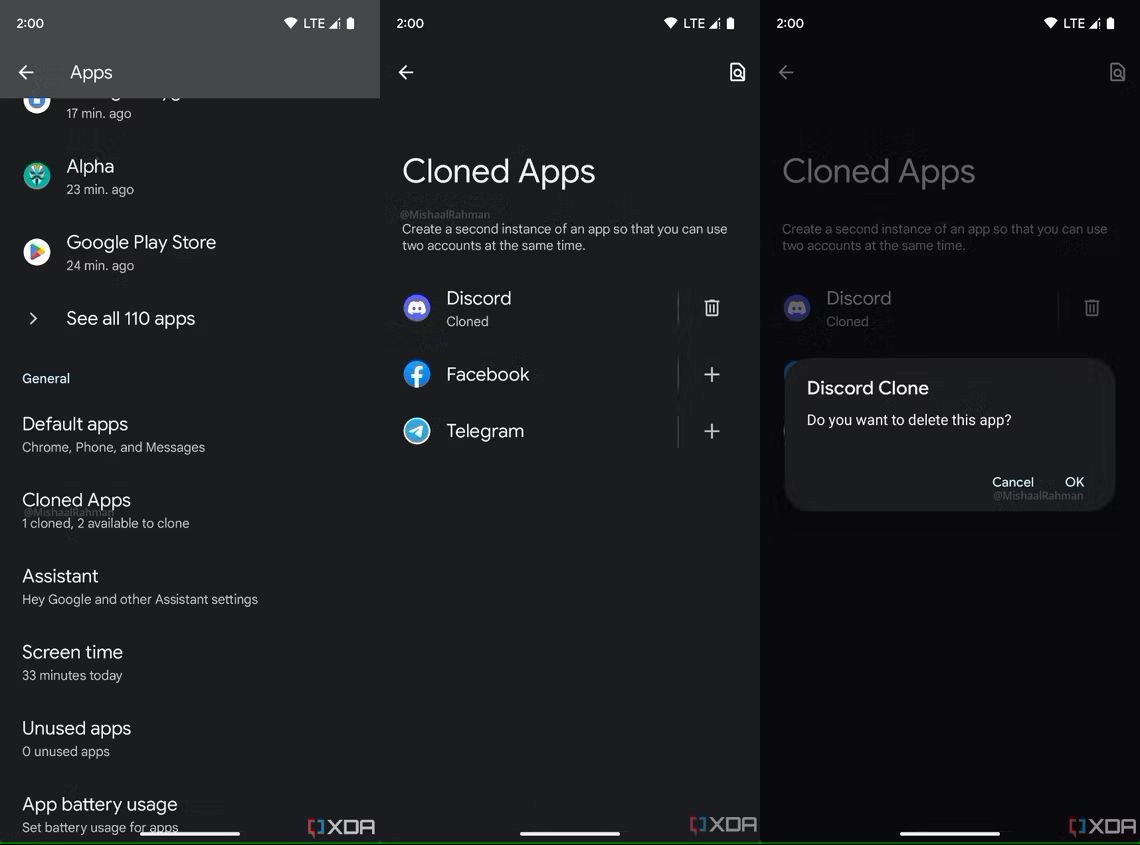 Изображение взято с xda-developers.com При этом, как сообщается, не все приложения можно клонировать, во всяком случае, пока. Запрет есть на дублирование фирменных приложений Google, в том числе Gmail и YouTube.