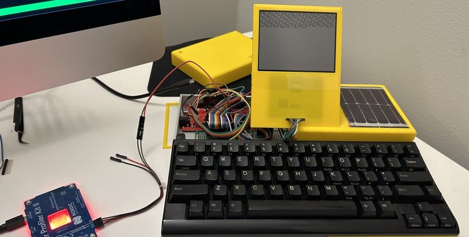 Источник: Hackaday Дело в том, что это устройство оснащено монохромным экраном Sharp Memory на 4,4 дюйма и платой Sparkfun Artemis с микропроцессором Arm Cortex-M4F, частота которого составляет 96 МГц. Чип потребляет меньше 6 мА, а в качестве источника питания используется батарея на 12 000 мА·ч.