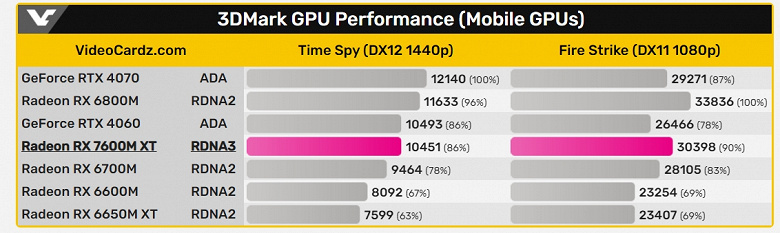 Видеокарта Radeon RX 7600M XT иногда может соперничать с GeForce RTX 4070 Laptop. Появились первые тесты адаптера
