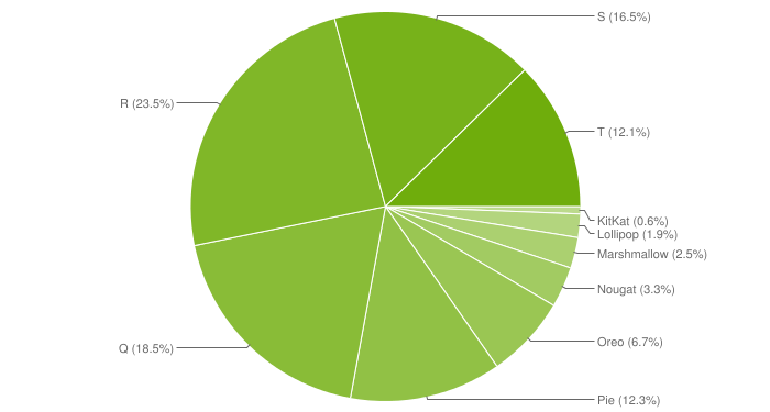 Android 13 удвоила свою долю с января, но Android 11 2020 года всё ещё уверенно лидирует