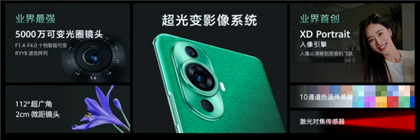 Основная камера представлена тремя датчиками. Основной – 50-мегапиксельный с раскладкой пикселей RYYB (как у флагманов Huawei) и объективом с переменной диафрагмой F/1,4 – 4,0. Также есть 8-мегапиксельный сенсор в модуле со сверхширокоугольным объективом и 2-мегапиксельный модуль для анализа глубины сцены.
