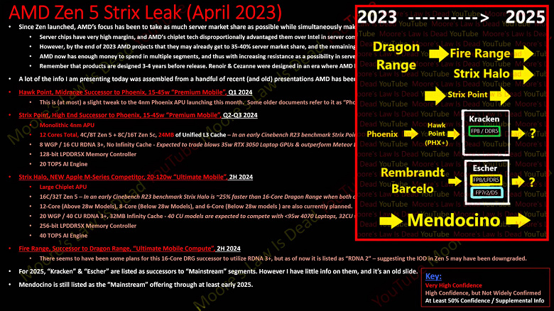 До выхода процессоров на основе архитектуры Zen 5 ещё достаточно далеко, но в Сети уже начинают появляться первые данные на этот счёт. Автор канала Moore's Law is Dead поделился информацией относительно мобильных решений линейки Ryzen 8000 (название пока не подтверждено), и кое-что из этого очень впечатляет.