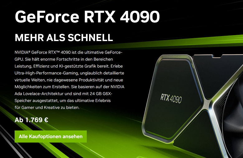 Компания Nvidia решила ещё немного удешевить GeForce RTX 4090 в Европе. Теперь рекомендованная цена за версию Founders Edition снижена до 1769 евро.