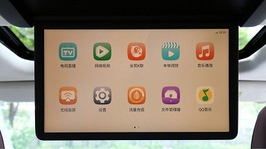 Внутри Trumpchi E9 есть три экрана на центральной консоли. Диагональ основного монитора достигает 14,6 дюйма, два других экрана имеют диагональ по 12,3 дюйма. Во втором ряду Trumpchi E9 есть два капитанских кресла. Каждый из них имеет собственный 5-дюймовый сенсорный экран, встроенный в подлокотник. С его помощью пассажиры могут отрегулировать свои сиденья. А на случай, если им будет скучно, в потолке есть 15,6-дюймовый экран. Всего у E9 целых 6 экранов. Кроме того, у него есть аудиосистема Yamaha с 16 динамиками. Третий ряд имеет три места.