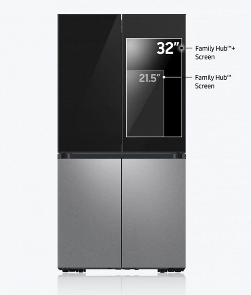 Восьмое поколение умного холодильника Samsung Family Hub оснащено огромным (для холодильника) 32-дюймовым сенсорным экраном разрешением Full HD по сравнению с 21,5 дюйма в предыдущей версии . Эта новая модель большого размера также является первым холодильником Samsung с контроллером умного дома Matter. По словам представителей Samsung, в июле существующие холодильники Family Hub версии 2.0 или новее будут обновлены для использования в качестве контроллеров для нового стандарта умного дома Matter.