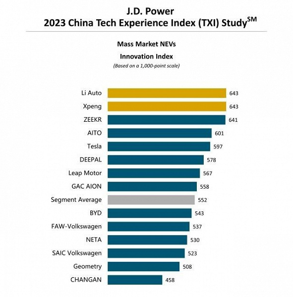 Рейтинг самых «умных» марок электромобилей в массовом сегменте в Китае Зарубежные производители авто лидируют только в одном сегменте – машин премиум-класса с ДВС. Тут первое место у Mercedes-Benz (574 балла), далее следуют Lincoln (557 баллов) и BMW (545 баллов).