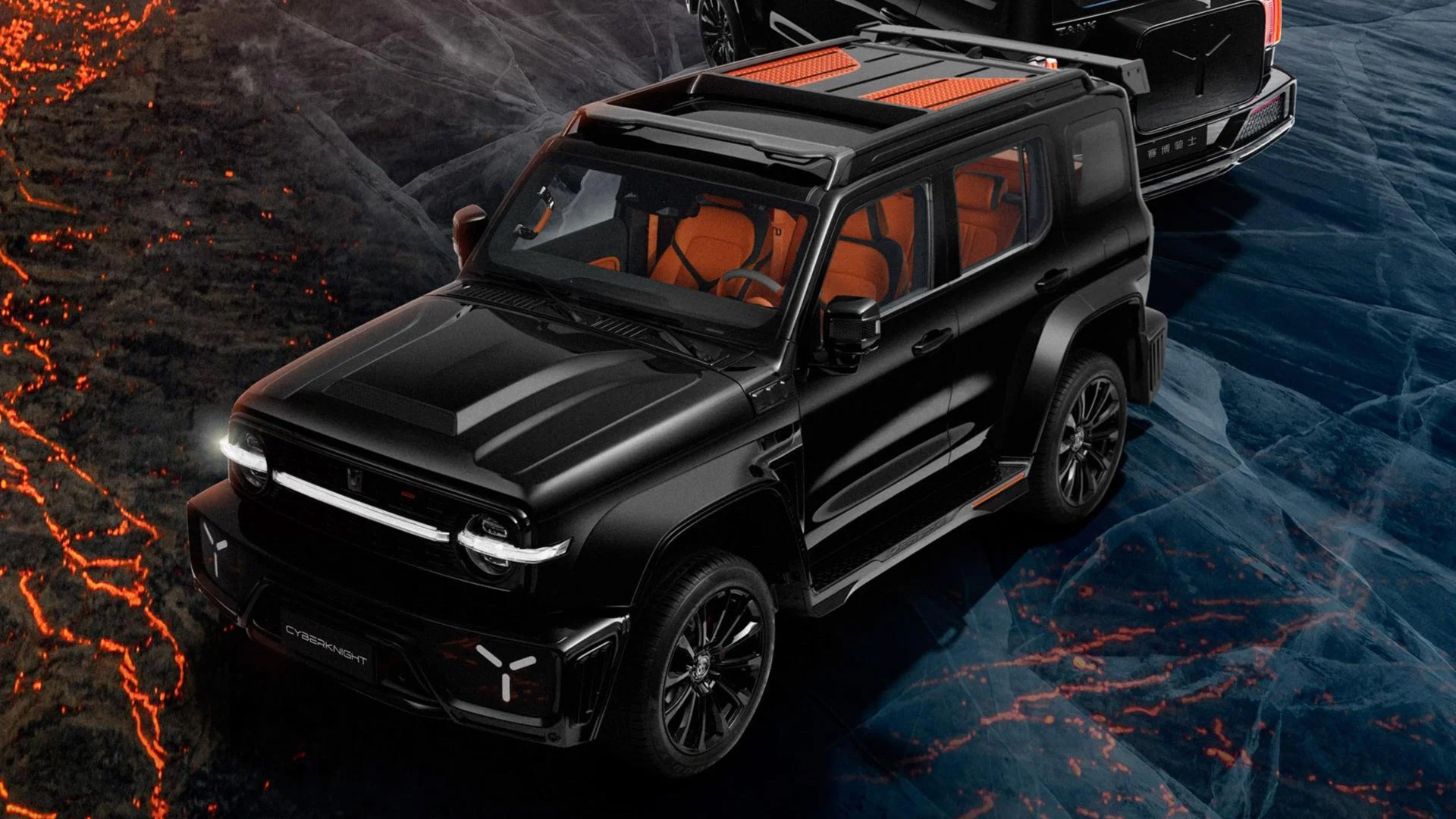 Tank 300 Cyberknight красят только в чёрный цвет, а вот интерьер может быть со вставками красного или синего цвета. В оснащении есть цифровая панель приборов, климат-контроль, подогрев передних сидений, люк, бесключевой доступ, адаптивный круиз-контроль.