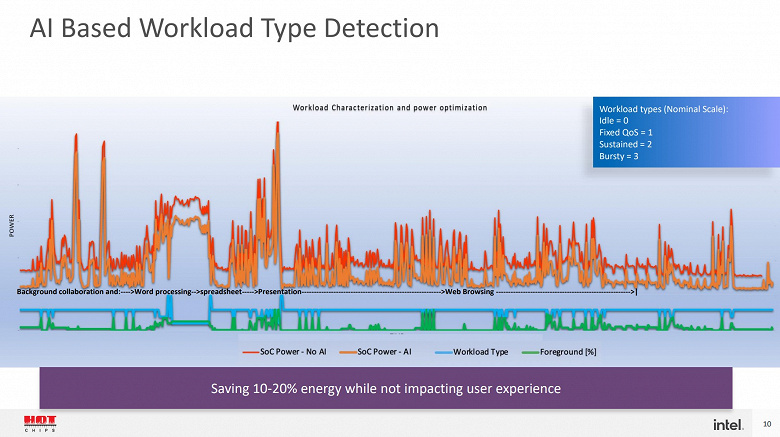 Искусственный интеллект будет использоваться для управления питанием. ИИ будет определять, какое количество энергии необходимо подавать на процессор для конкретной рабочей нагрузки. Это позволит CPU быстрее переходить от одного режима потребления к другому. Как следствие, процессор будет более энергоэффективным.