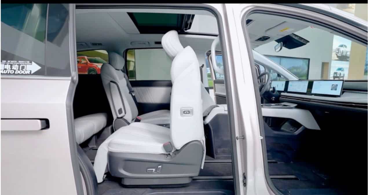 Приборная панель оснащена тройным экраном, состоящим из приборной панели, центрального экрана управления со встроенным чипом Qualcomm Snapdragon 8155 и развлекательного экрана переднего пассажира.