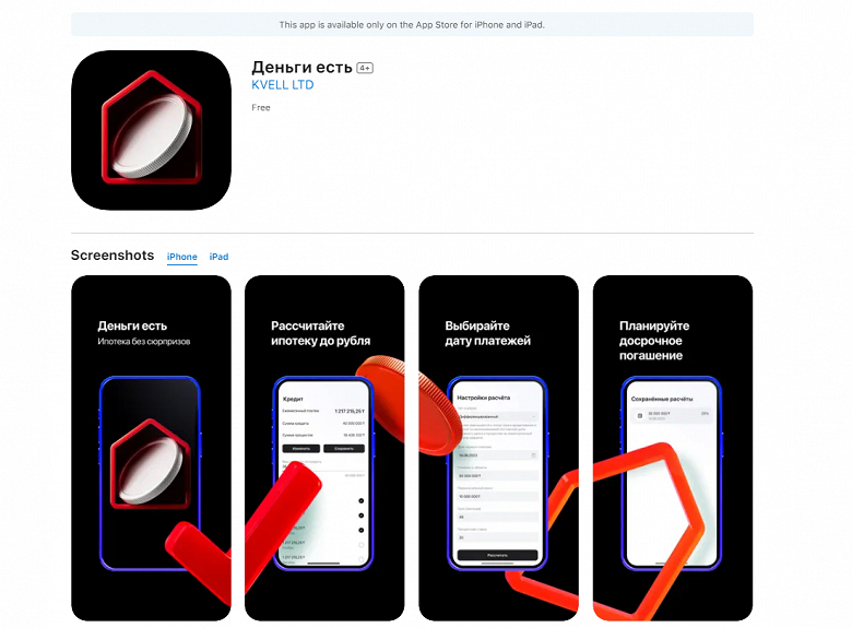 Приложение «Деньги есть» было замаскировано под ипотечный калькулятор. На момент его появления мы предположили, что приложение продержится в App Store недолго и будет удалено, как и предыдущие приложения «Альфа-Банка». В этот раз приложение оставалось незамеченным 9 дней.