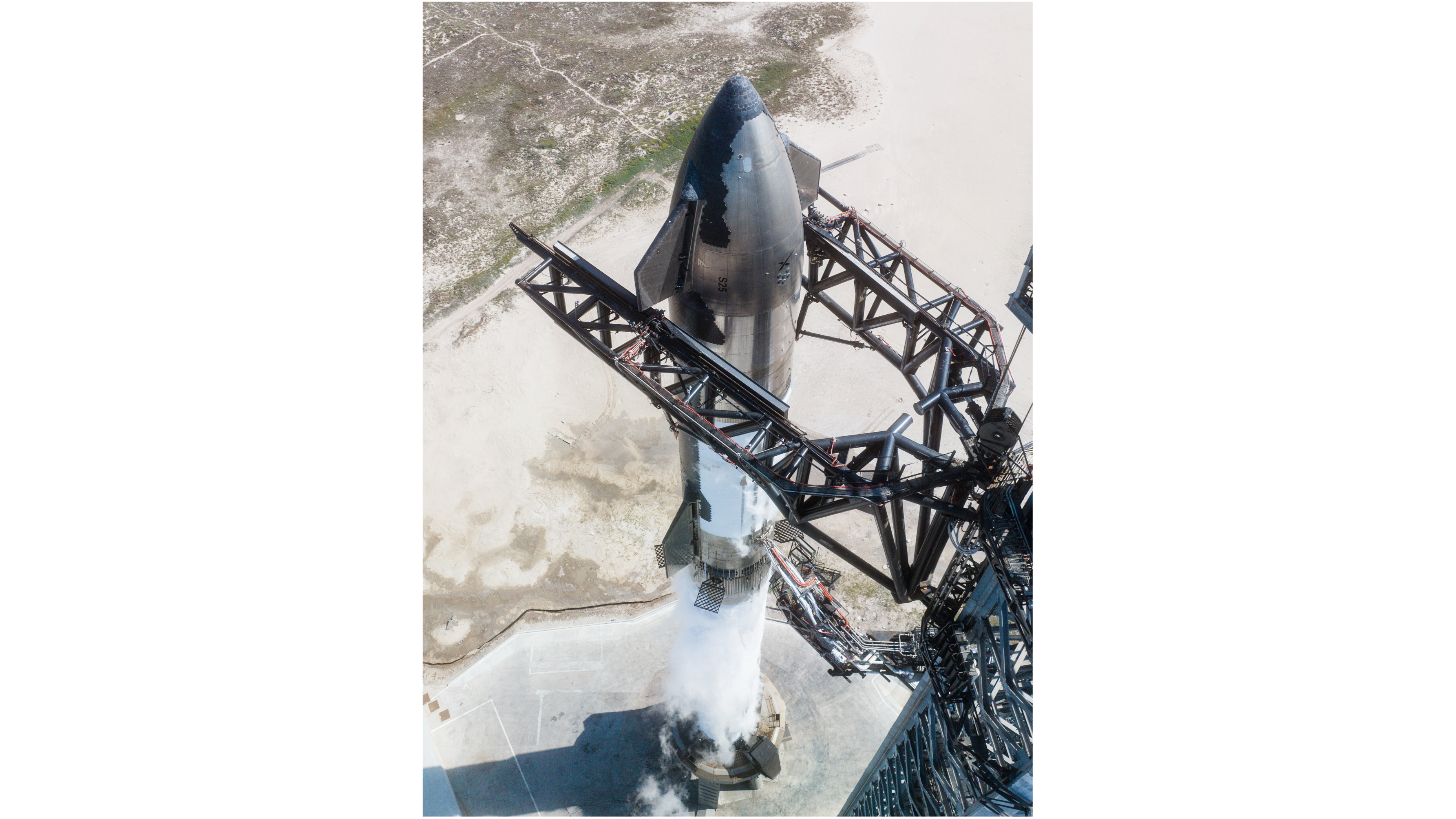 Ко второму испытательному полёту готова: SpaceX заправила огромную 122-метровую ракету Starship. Впечатляющие фото покрытого инеем корабля