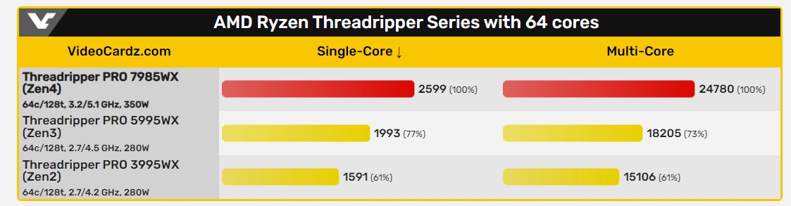 Браво, AMD. Threadripper Pro 7985WX быстрее Threadripper Pro 5995WX на 36% при одинаковом количестве ядер