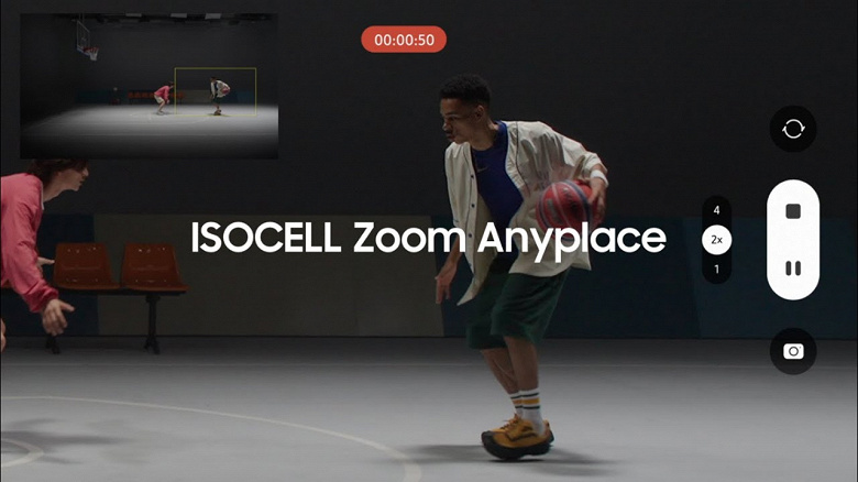 Возвращаясь к рекламе, она посвящена даже не датчику в целом, а технологии ISOCELL Zoom Anyplace, которая автоматически масштабирует и отслеживает нужный объект видео, одновременно снимая уменьшенные кадры сцены.