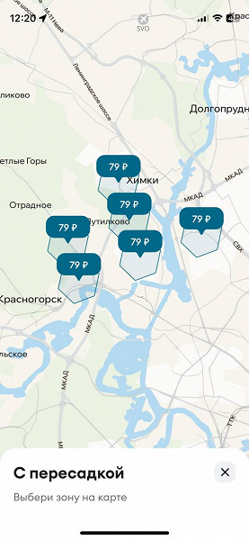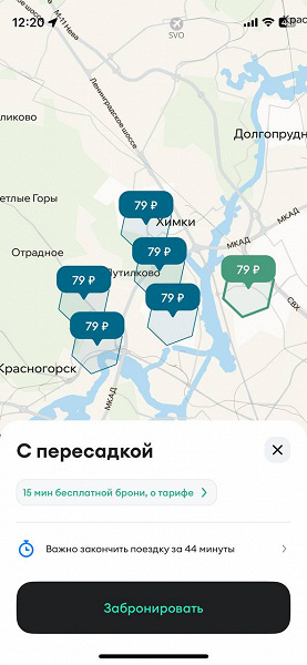 Тариф действует в определенные часы — пользователь увидит машину «С пересадкой» на карте приложения, когда спрос в этой зоне будет ниже. Также можно пользоваться специальным фильтром.