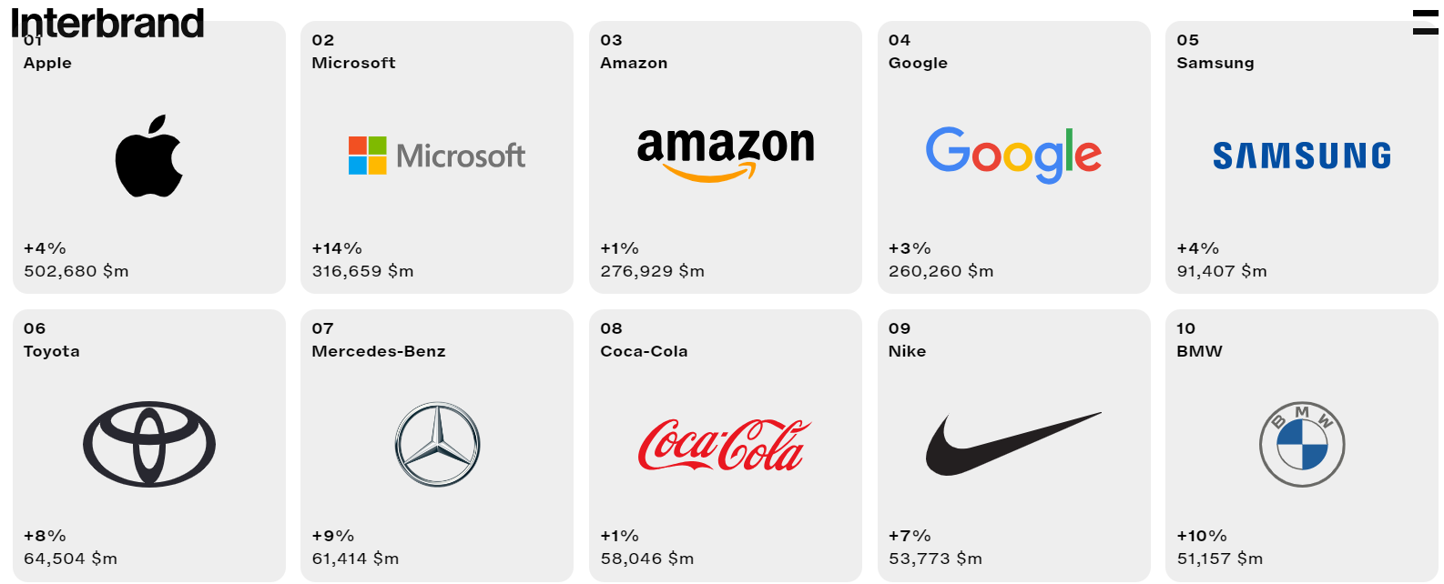 Названы самые дорогие бренды в мире, по версии Interbrand