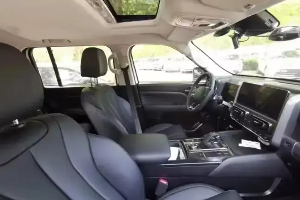 Внутри новый Haval H9 выглядит как многие современные кроссовер марки. Перед водителем – цифровая приборная панель, по центру передней панели – крупный экран медиасистемы. Интересно, что рукоятка коробки передач (судя по виду, как у Tank 300) осталась на центральном тоннеле, хотя многие автопроизводители заменяют ее на подрулевой рычажок, освобождая место между передними креслами, например, для подстаканников или беспроводной зарядки. Под центральным экраном находится блок физических клавиш управления климатической системой. Примечательно, что модной панорамной крыши нет, вместо нее – обычный люк.