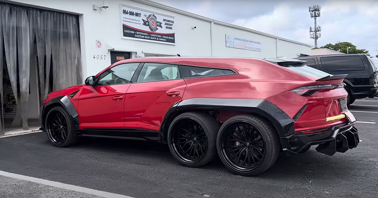 В Сети появились изображения и видеоролики красного Lamborghini Urus, который пережил сильную трансформацию и был превращен в автомобиль с колесной базой 6х6. Mercedes-Benz G 63 AMG 6х6, появившийся десять лет назад, стал прообразом для подобных переделок, которая позже появились на базе Ford F-150 и Ram 1500.