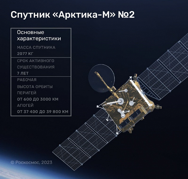 Космический аппарат «Арктика-М» №2 предназначен для мониторинга гидрометеорологической обстановки в арктическом регионе и прилегающих территориях, контроля гелиогеофизической обстановки в околоземном космическом пространстве, ретрансляции сигналов от аварийных радиобуев международной спутниковой поисково-спасательной системы КОСПАС-САРСАТ и информации с автоматических измерительных платформ сбора данных Росгидромета, в том числе расположенных в арктическом регионе.